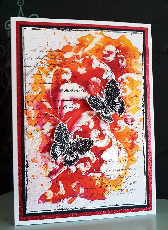 Hands up all of you who have a huuuuge pile of backgrounds that you have made, either gelli prints or stamped or stencilled, or any other technique, just waiting for the right project to use it on...!!!!....I thought so...sooo that's most of us then!!!....Well...you are in for a treat when you see the new stamps that The Artistic Stamper are launching, and here is a sneak peek of one of them that I have used to make the background for my card. I simply added a butterfly from the INSECTS AND BUTTERFLIES stamp set, then added a sentiment. Somebody stop me from using this background stamp....cos my pile is twice as high now!!!!!So this months challenge is all about backgrounds, hope to see you HERE.