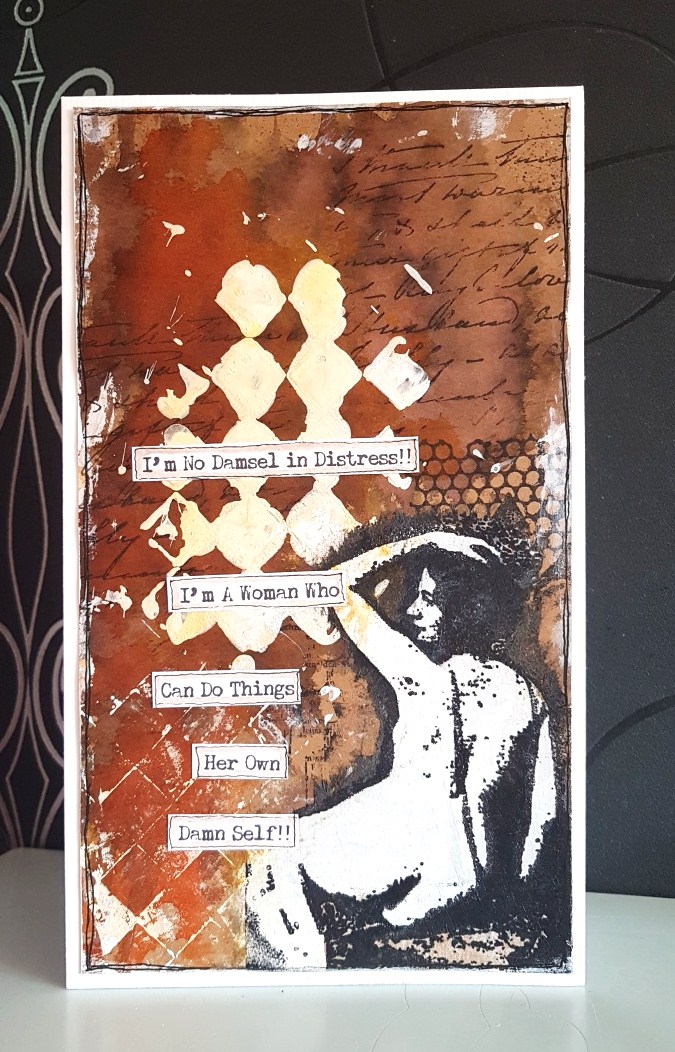 I'm loving this months challenge over at The Artistic Stamper...which is "Distress It".... I mean...who doesn't love Sir Tim's distress inks, oxides, sprays....well to be more precise..every God damn Tim Holtz product!!!..between them and dancing lessons, I am never gonna be able to retire to a villa on the beach in the south of France!!!..lol.