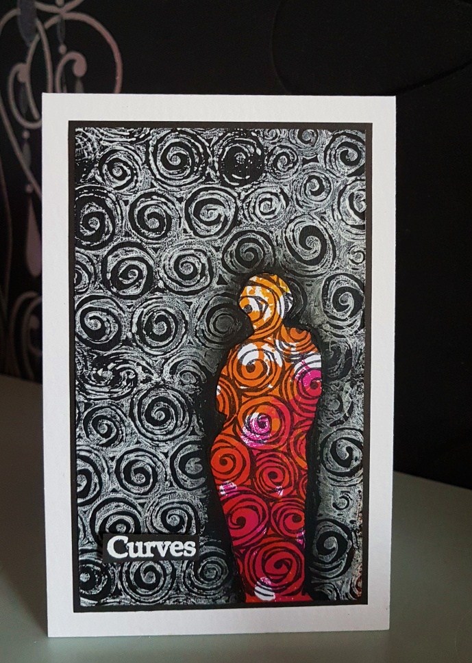 I know this technique has been done a million times before...first time for me tho!!! colourful background, a bit of stamping, mask off a silhouette, and paint everywhere else black, then stamped over the black with the same stamp as I used on the underneath background. the stamp is a new midi stamp designed by Tracy Scott for THE ARTISTIC STAMPER.Friday, 21 June 2019